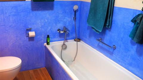 In Badezimmern eignet sich die Verbindung Tadelakt mit Lehmputz sehr gut. Beides sind natürliche Materialien, die der Schimmelpilz-Bildung vorbeugen.